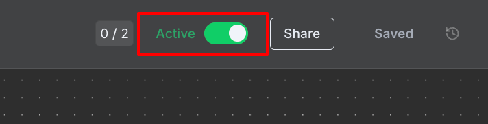 워크플로우 캔버스 상단에 Inactive 를 Active 로 활성화 해주어 영구적으로 연동됩니다.