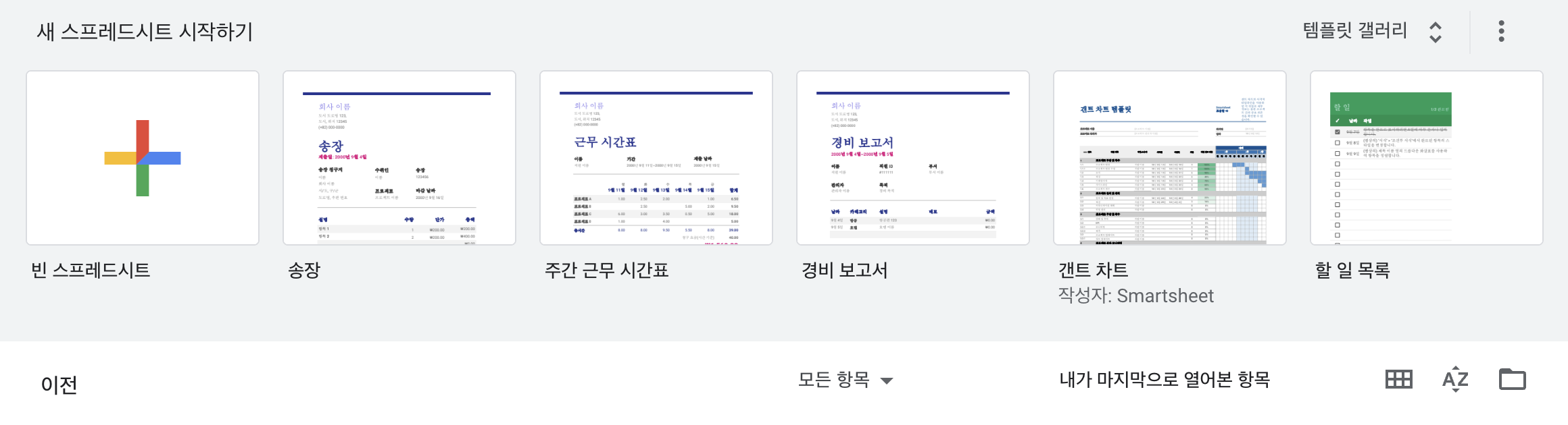 구글 스프레드시트 페이지에서 빈 스프레드시트 버튼을 클릭합니다.