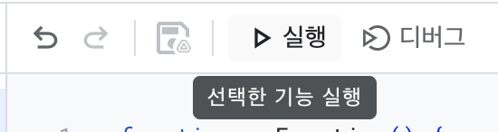 구글 앱스크립트 페이지에 들어오면 처음에 function myFunction().. 등으로 위의 사진처럼 코드가 입력되어 있는 부분을 확인하실 수 있습니다.
