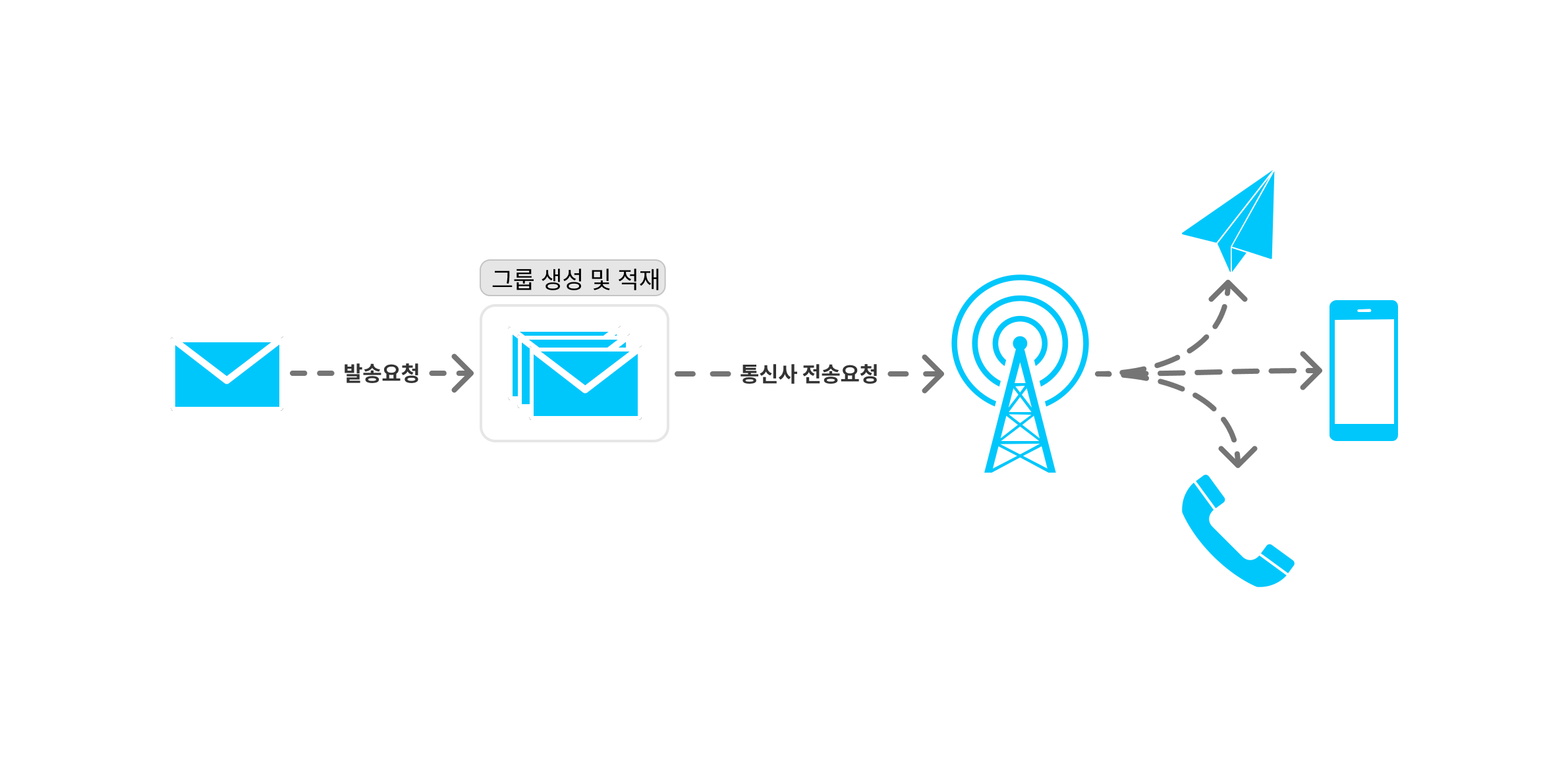 이러한 구조 덕분에 대량 발송 시에도 안정적인 처리가 가능하며, 각 메시지는 고유한 메시지 ID를 통해 개별적으로 상태를 추적하고 관리할 수 있습니다.