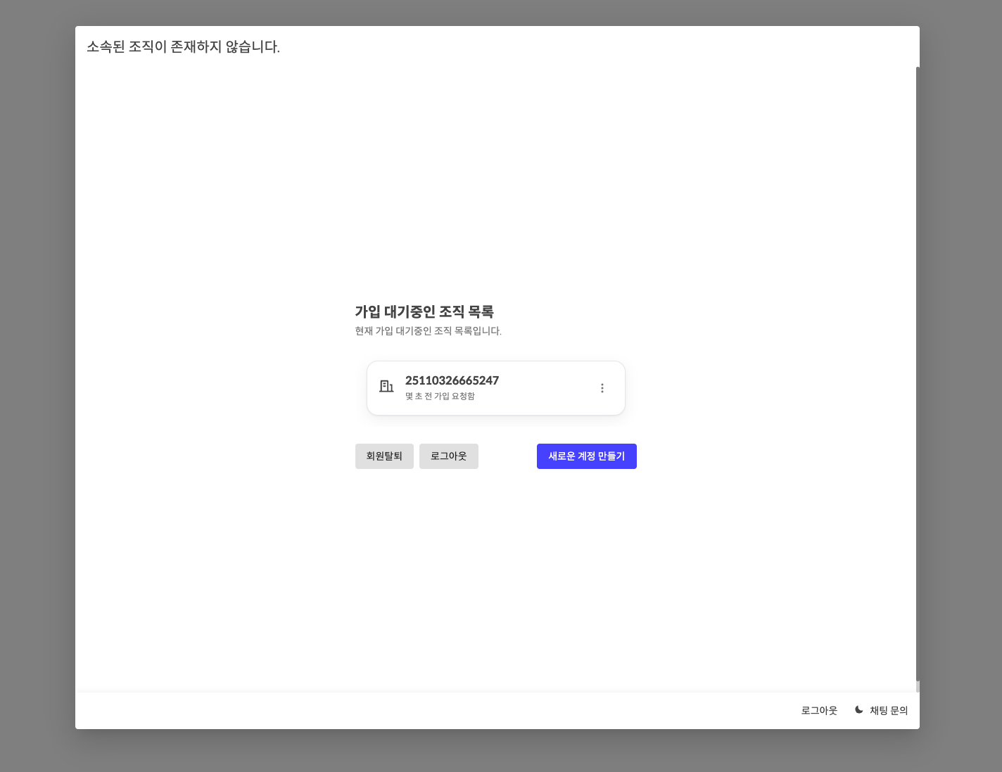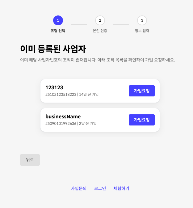 기존 계정 및 회원 개념에서 조직 및 워크스페이스로 계정 개념이 더욱 더 확장되었습니다. 부수적으로 사업자 및 개별 회원가입 중복 가입을 제한하여 기존 회원 가입 여부를 명확히 알 수 있도록 개선하였습니다.