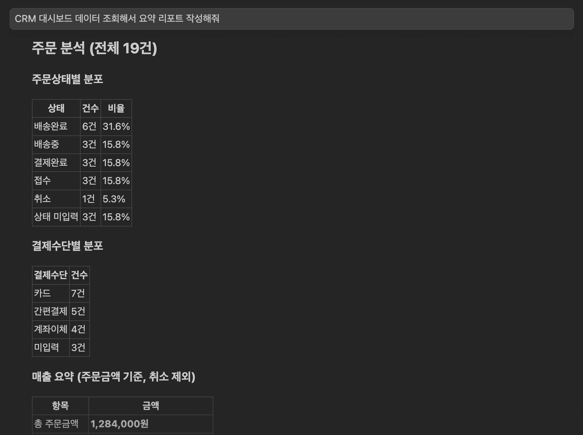 멤버 조회 → 담당자별 레코드 집계 → 활동 이력 분석 → 태그 업데이트. 사람이 반나절 걸릴 관리 업무를 AI가 몇 분 만에 처리합니다.