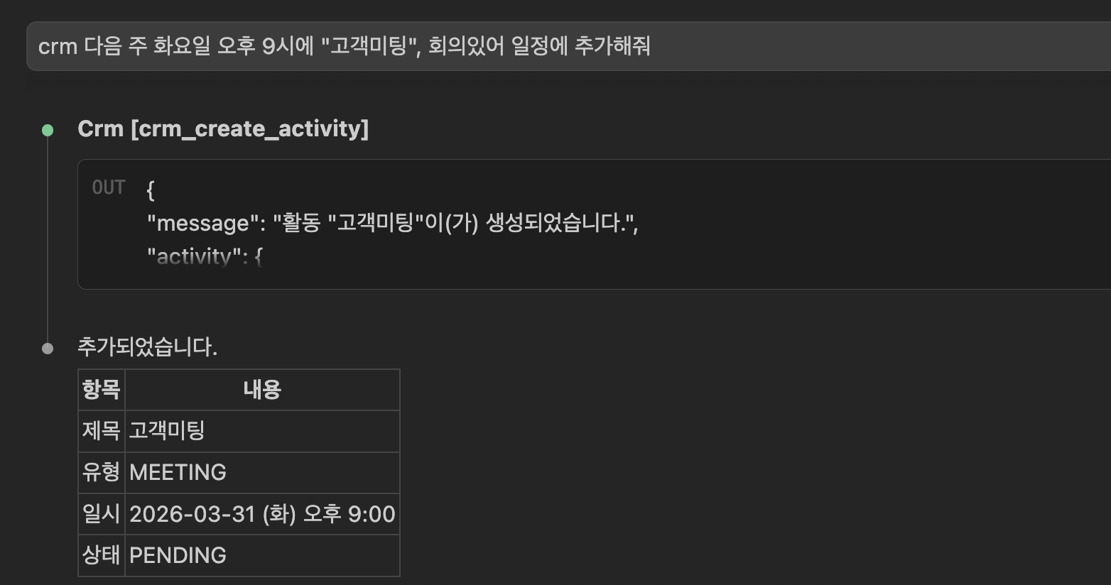 💬 "다음 주 화요일 오후 2시에 미팅 일정도 잡아줘"
