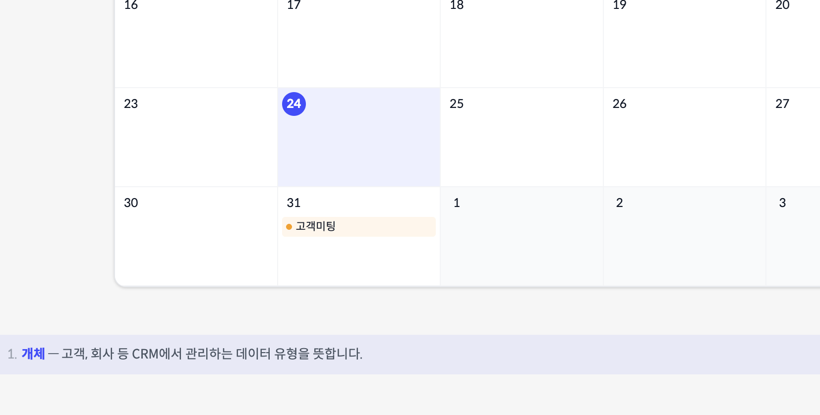 활동: 통화, 미팅, 메모, 태스크 등 활동 기록