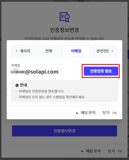 서비스 이용 시 보안 강화를 위해 로그인 단계에서 2차 인증 절차가 진행됩니다. 이는 계정 도용 및 스팸 메시지 발송 등과 같은 보안 위협을 방지하기 위한 추가 보호 조치입니다.