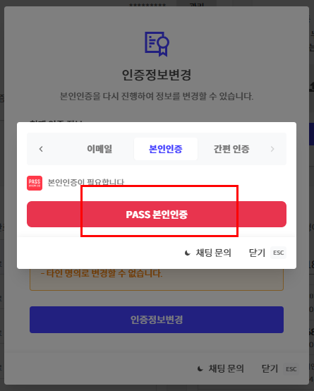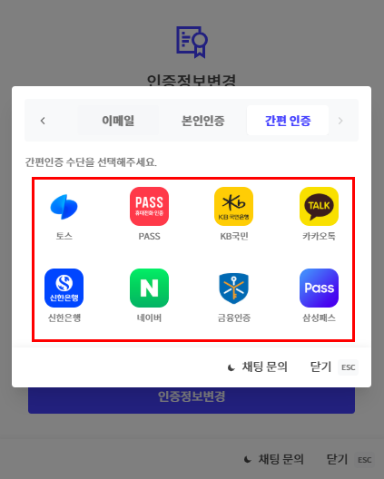 해당 방식 이용이 어려운 경우, 이메일 인증, 2차 비밀번호 또는 Google OTP 인증을 이용해 주시기 바랍니다.