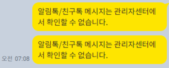 *솔라피를 통해 발송된 알림톡 및 친구톡 메시지는 카카오톡 채널 관리자센터에서 “알림톡/친구톡 메시지는 관리자센터에서 확인할 수 없습니다.(이미지 참고)”로 표시되거나, 아예 발송 이력이 조회되지 않을 수 있습니다.